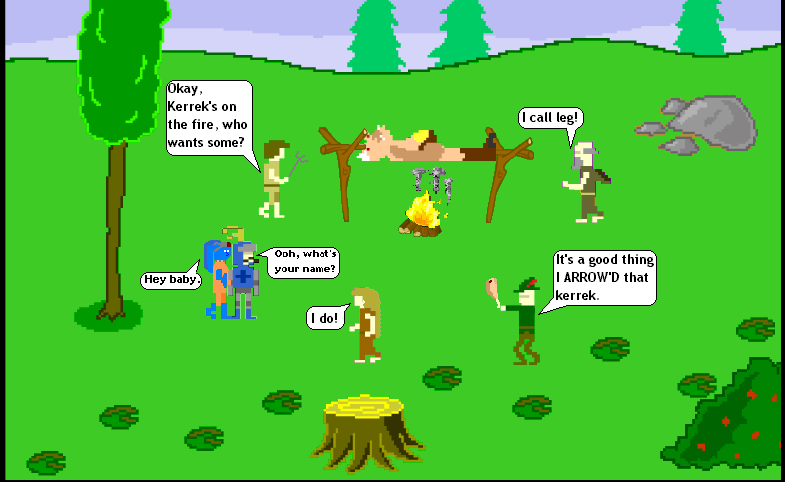 | current | 22:12, 10 March 2006 | 785×482 (33 KB) | Dennis Dunjinman (Talk | contribs) | (The village of Peasantry roasts a Kerrek. And I don't know who that Twi'lek dancer girl flirting with the knight is.) |