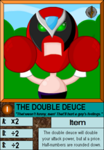 The double deuce will double your attack power, but at a price. Half-numbers are rounded down.