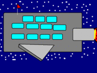 Dark Greggo's ship is your average evil villians ship. It's huge, silver, and has a solid red skull on the side. It also has some spray-paint on it, made by Muffin Man.