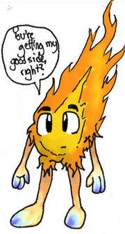 Fiery-Hot is Saargtsson's minion. He's the The Cheat to Saargtsson's Strong Bad, the mayo to his smelly tuna fish sandwich, the Rikku to his Yuna, the battery to his Gameboy, the... dealie-whacker to his... doohickey. Um, yeah. He'll usually do just about anything Saargtsson asks, but he's still smart. He's usually the voice of reason in Saargtsson's life, despite the fact that he typically gets ignored. He's also a little gullible and susceptible to manipulation and blackmail of the "snog the nog" variety... don't ask.