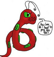 Saargtsson is the star of the e-mail show, and it's rumored that the show is named after him, but such rumors remain unconfirmed... or DO they? ...Hmmm... Well, anyway, Saargtsson takes his show and himself very seriously, and he likes to blow things like forgetting to use the space bar, made-up stories and his Sprawling Power Crunch Garden of... oh, you know, his lava world, way out of proportion. He collects power crunches and usually demands them from anyone he comes into contact with. He doesn't have very many minions, something that he is sensitive about, but he can usually convince his fiery-hot friend Fiery-Hot to do stuff for him, probably by lying to him. Saargtsson does that a lot. He also enjoys verbally/physically abusing people like Chorch and Gaspeau. And that is Saargtsson, in a nutshell. Restrictions apply, results may vary, Saargtsson is not valid if you don't like really awesome lava snakes, in which case, you're more of a slob than Gaspeau.