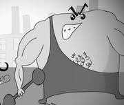Strong Man is a nice guy. He checks emails, looks after The Sneak and despises Sir. He hates Sir ans is jealous of him, however, if he wants something he always asks first. Sir ofte mistreats him. He's very emotional. It's not really muscle, it's actually a appearance retaining milkshake served by the local bartender.