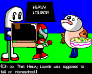 THE POOPSMITH: {subtitled} (Okay, I'll take that.) {He takes the cake. Strong Bad gets squished by a Heavy Lourde. Homeschool WInner walks in, carrying the Poopsmith's Boxor 186.}