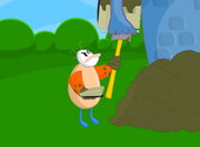 {When Flaming Poopsmith is about to be struck, the frame freezes, and a the message "Poopsmith Email will be right back..." appears in the middle for about three seconds. It then flashes and displays "Poopsmith Email will be right back... Immidiately!" The scene continues, and a sihouletted Ninjawax lands and slices the attack with his sword.}