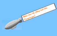 {He looks into the sky and sees a blimp trailing a sign asking what The Chief looks like.}