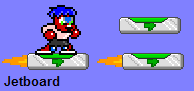 As Stinkoman advances through the Jaro Base, he comes across falling platforms. Because of the base's size, Stinkoman decides to rewire the platforms into Jet Boards for him and 1-Up. They can travel at triple Stinkoman's speed, but have no attack capabilities.
