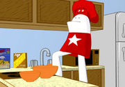 {Camera zips down to reveal Homestar dancing in place in the kitchen, wearing his chef hat.}
